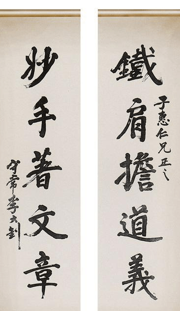 北房堂屋中对着门摆放一张八仙桌,两侧各放一把椅子,靠北墙的条案两端各摆着一只掸瓶,中间摆着一台老式座钟,条案上方悬挂着一幅中堂画,两侧悬挂着一副对联——“铁肩担道义,妙手著文章”。