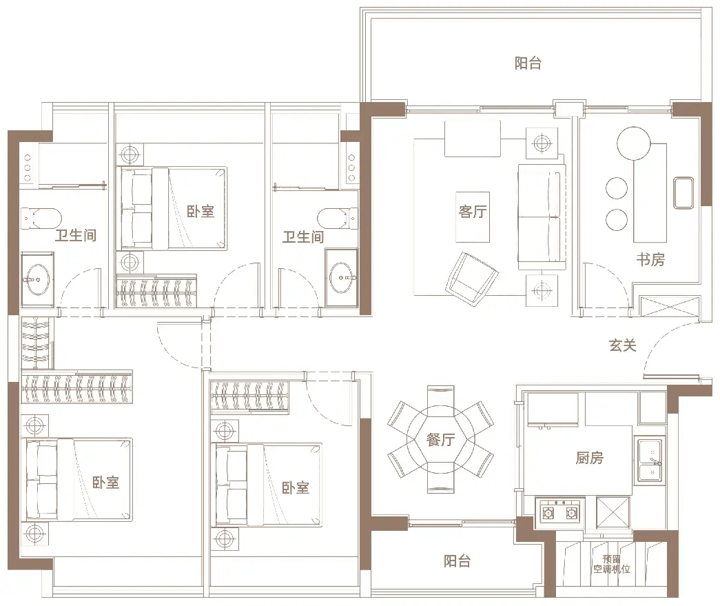 项目主力户型为 98-143㎡三至四房及 133-279㎡商墅产品,户型设计充分考虑岭南气候特点和家庭居住需求,实现 “全南向、大面宽、高使用率” 的核心优势。其中 125㎡四房户型堪称四代宅标杆,实测实际使用面积约 170㎡,相当于旧规 200㎡豪宅体验,五开间朝南,约 18.7 米超长面宽,确保室内采光通风俱佳;LDKG 一体化设计,双空中花园总面积约 43㎡,进深达 6 米,部分户型配备超 26㎡空中庭院,兼具实用性与舒适性。