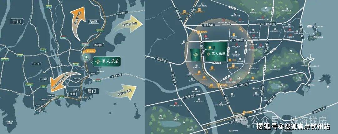 对外交通,项目5分钟即抵轻轨明珠站,快速接轨大湾区内的多个重要城市;15分钟接连港珠澳大桥、拱北、青茂、湾仔、横琴口岸,速通港澳。